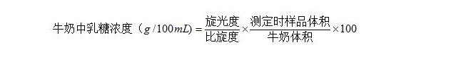 取50mL牛奶樣品于100mL容量瓶中,加乙酸鉛和亞鐵氰化鉀溶液、冰乙酸各2mL,搖勻后靜置30min,用干燥濾紙過濾,棄去初濾液,測(cè)定其旋光度,記錄數(shù)據(jù)。